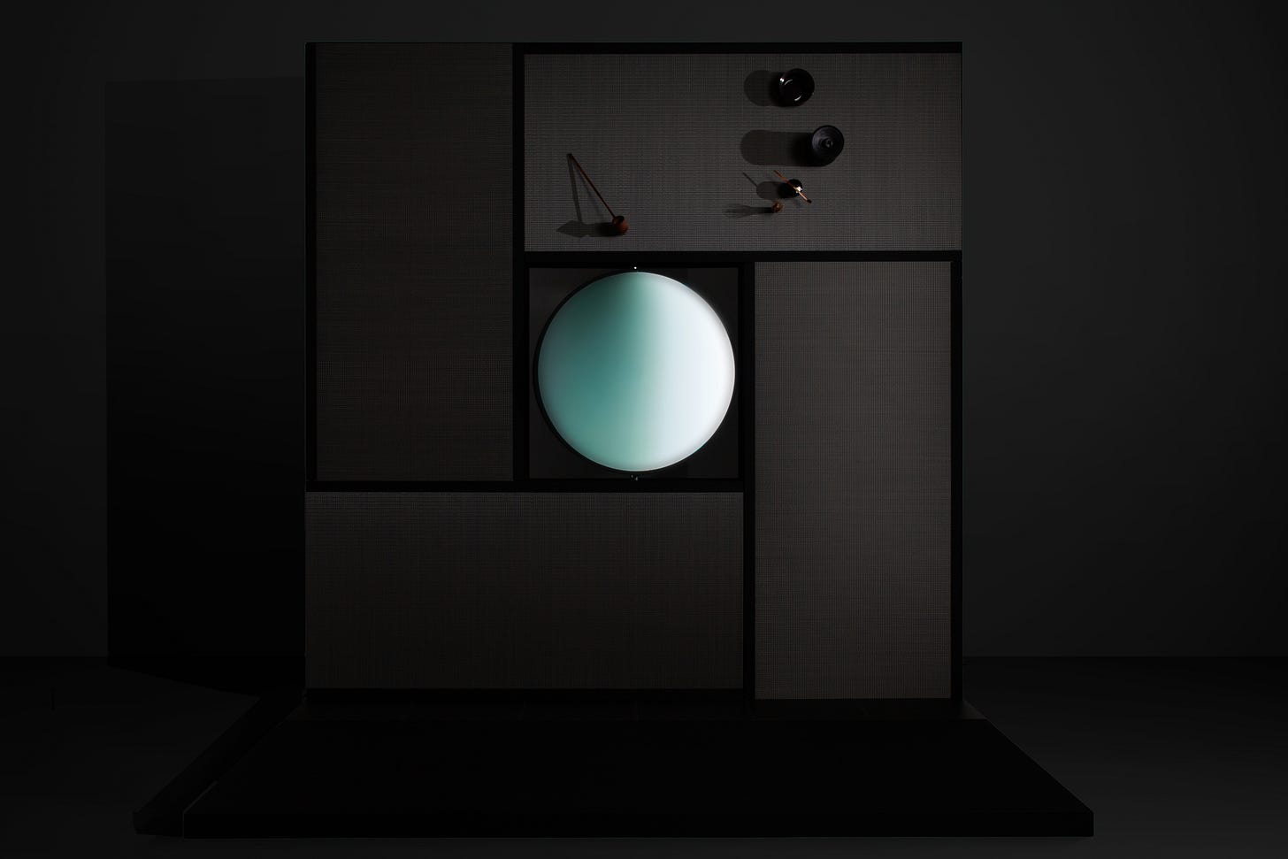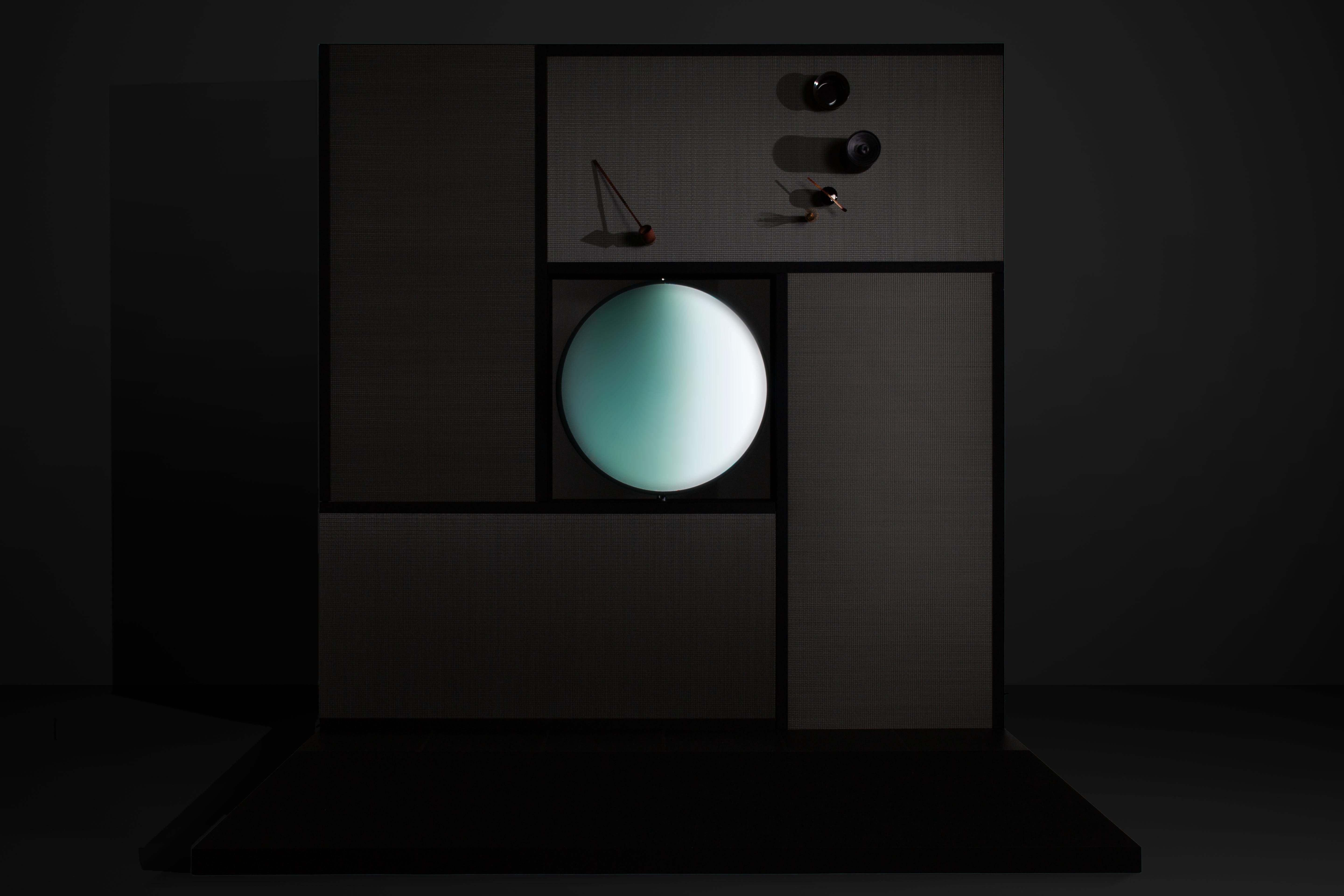 この施設は、金融都市としての東京を発展・成長させる目的で開設された場所で、この作品は「金融の未来」を象徴するアートとして制作しました。かつて、茶室はコミュニケーションの場であることに加え、宇宙を俯瞰から見る場所という意味を持っていました。そのイメージを使って、「金融の未来を俯瞰から見る」という意味を持たせたかったんです。